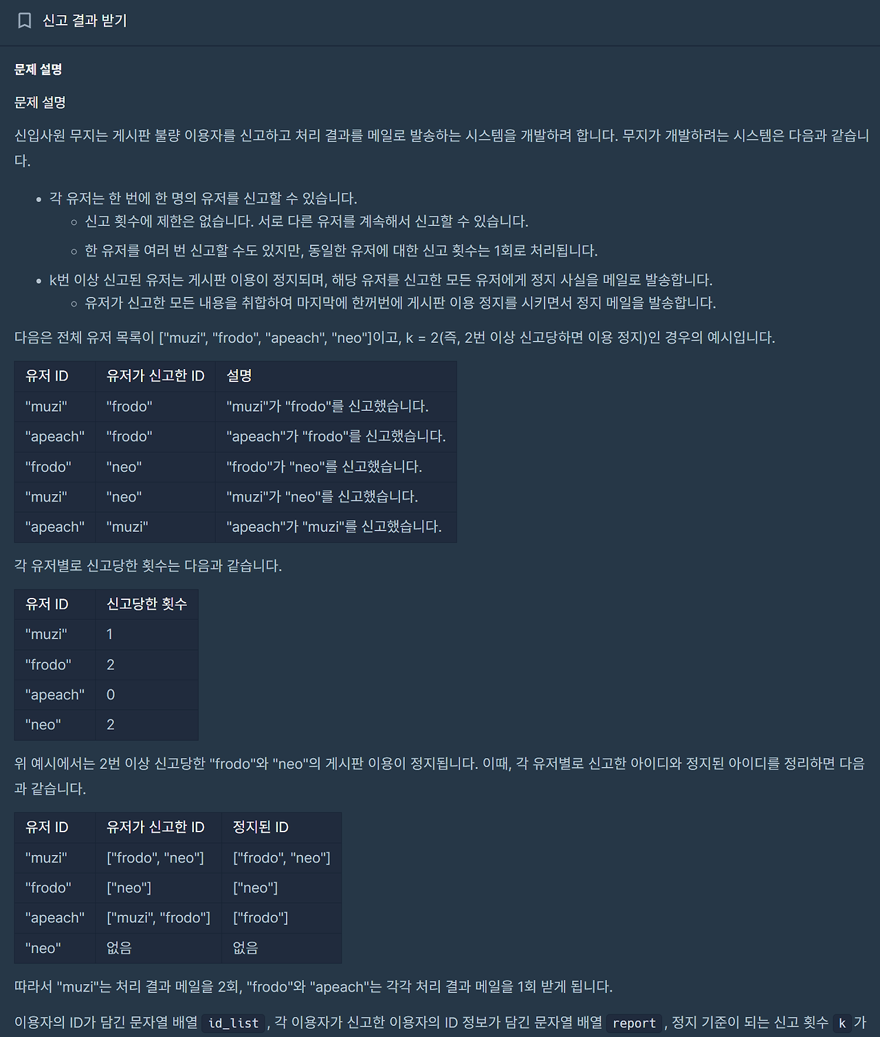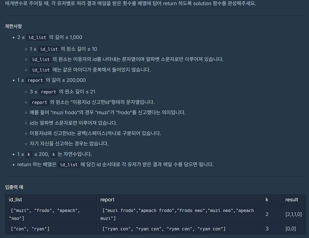 # k번 이상 신고당했으면 정지니까, 신고한 사람에게 메일 보내기