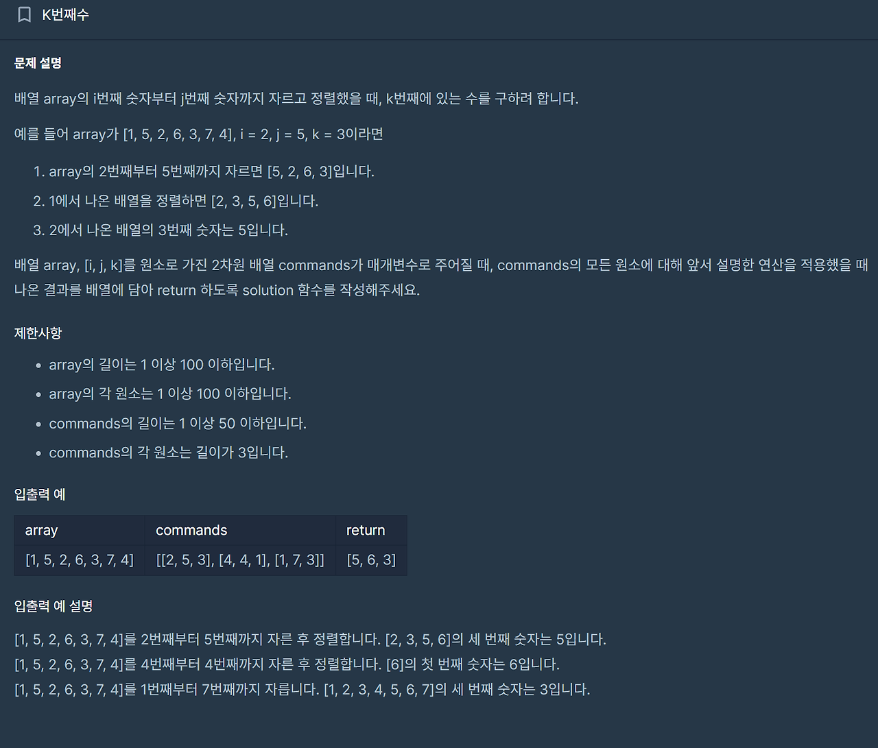 return list(map(lambda x:sorted(array[x[0]-1:x[1]])[x[2]-1], commands))'알고리즘 > 프로그래머스' 카테고리의 다른 글