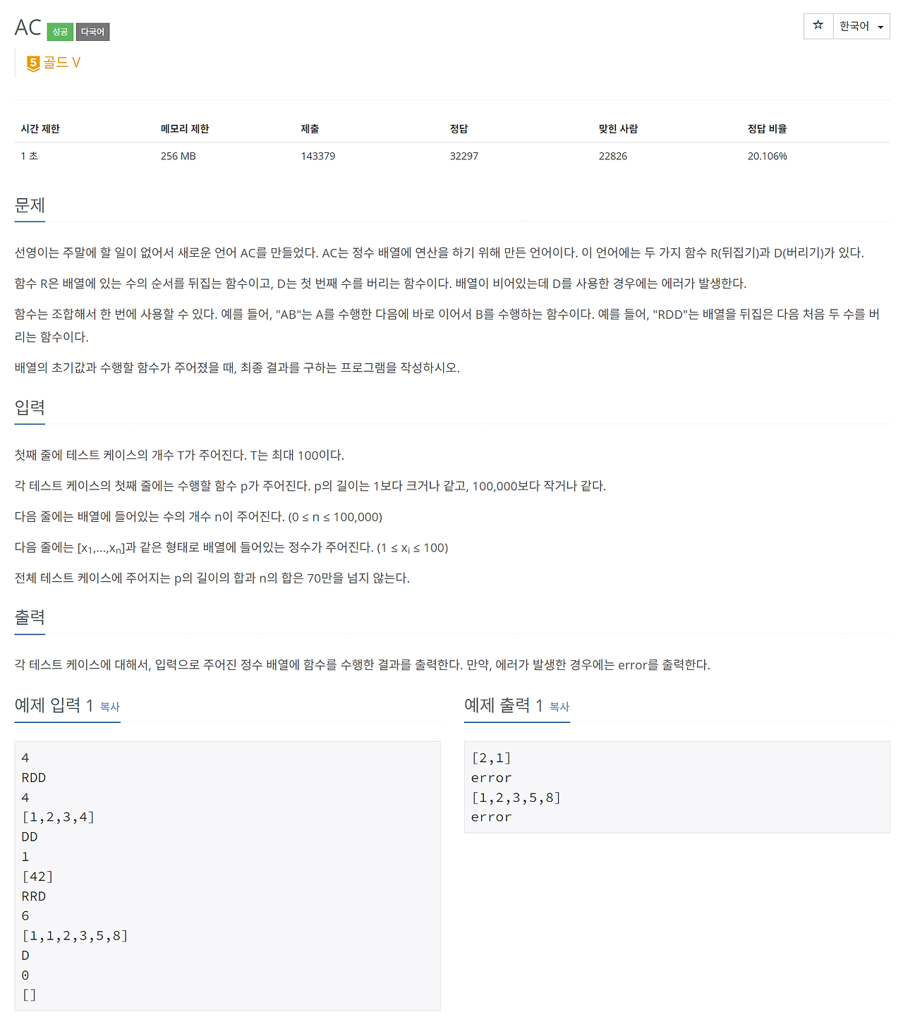 AC 정수 배열에 연산을 하기 위해 만든 언어