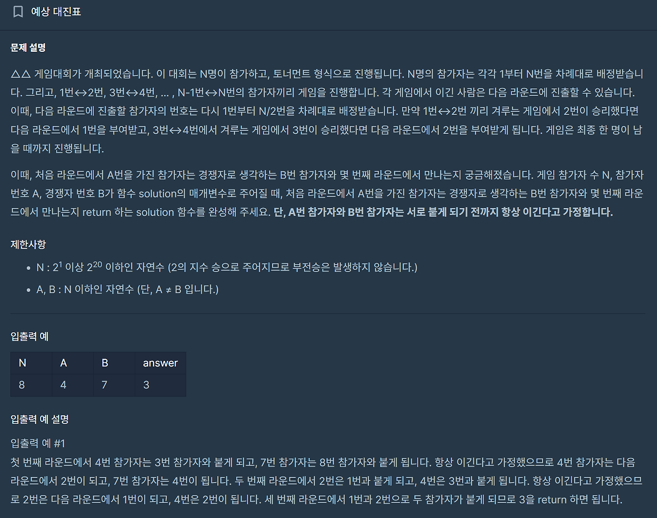 그리고 while문을 돌려서 // 연산자를 이용하여 a//2 == b//2가 될 때까지 즉, 같은 대전을 할 때까지 반복하기로 했다.