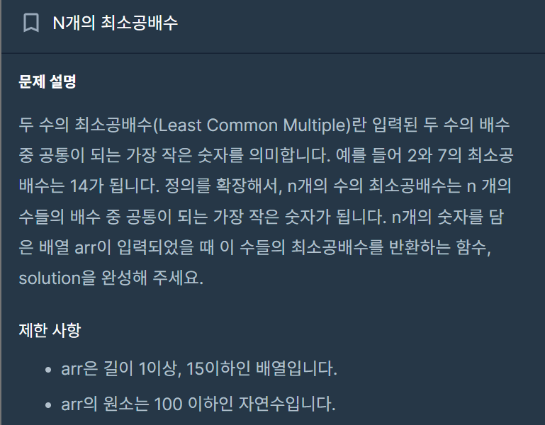 다만 2개의 수에서 최소공배수를 구하는 것이 아닌 N개의 수에서 최소공배수를 구해야 한다.