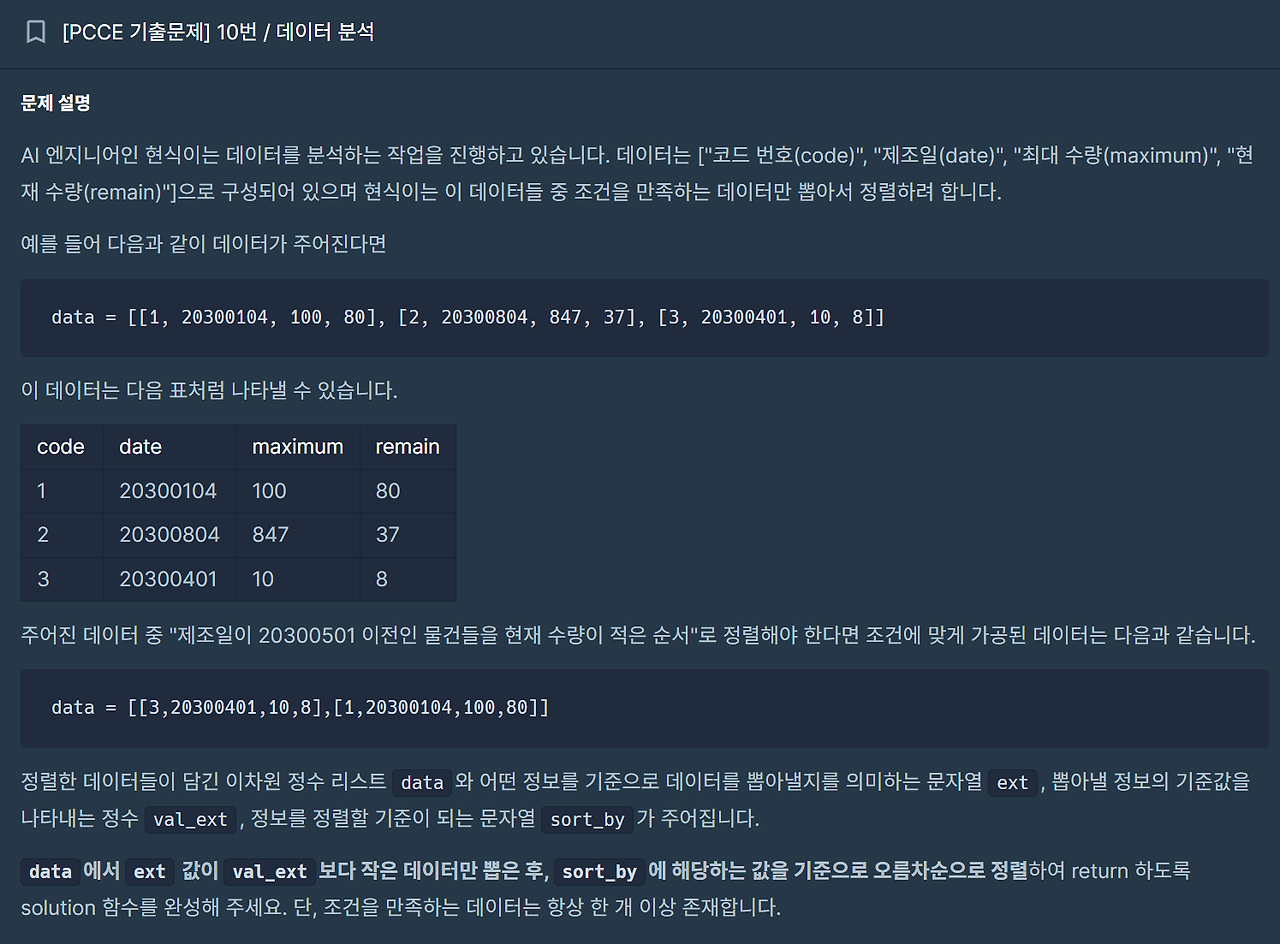 [PCCE 기출문제] 10번 / 데이터 분석
