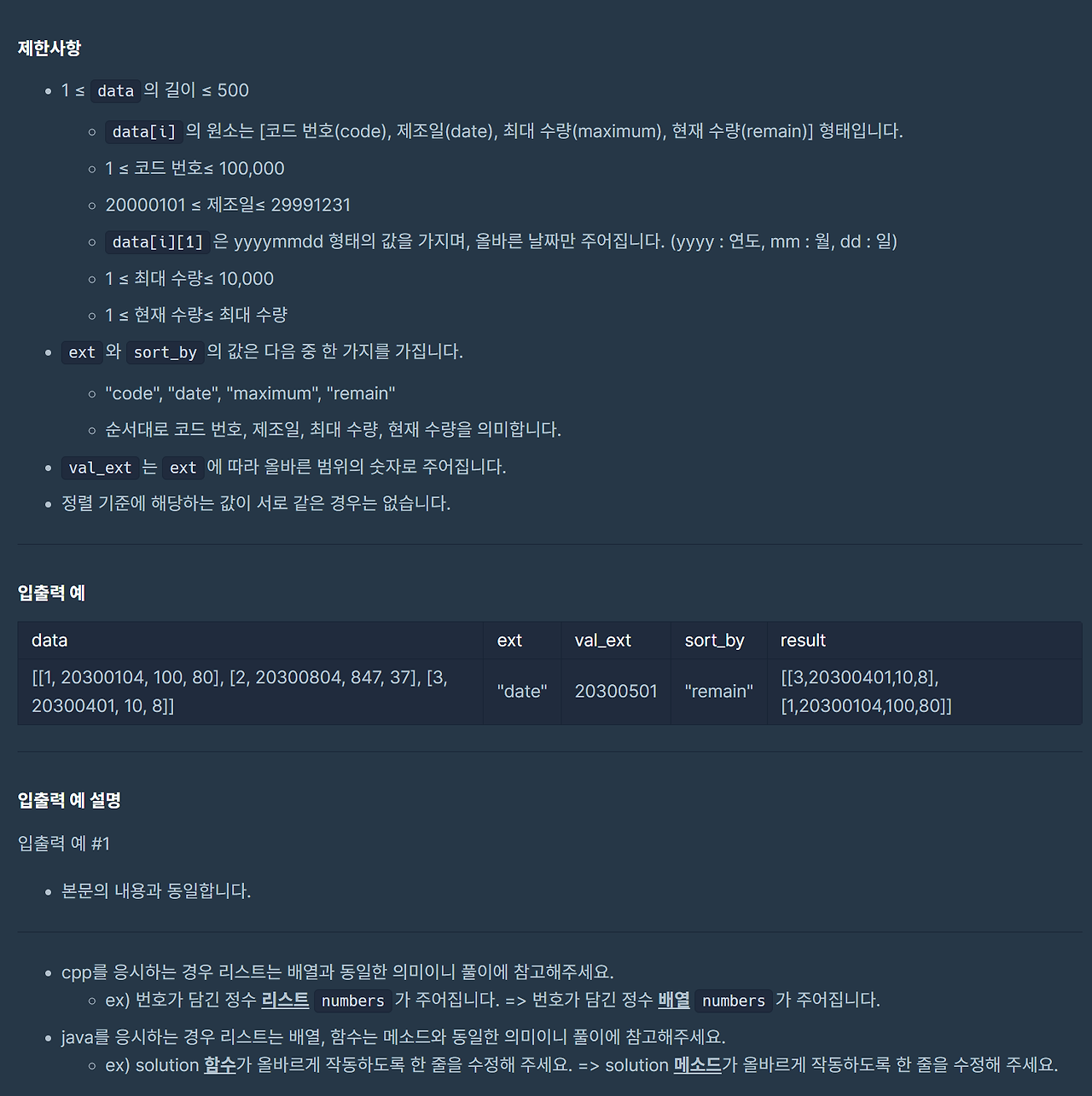 def solution(data, ext, val_ext, sort_by):