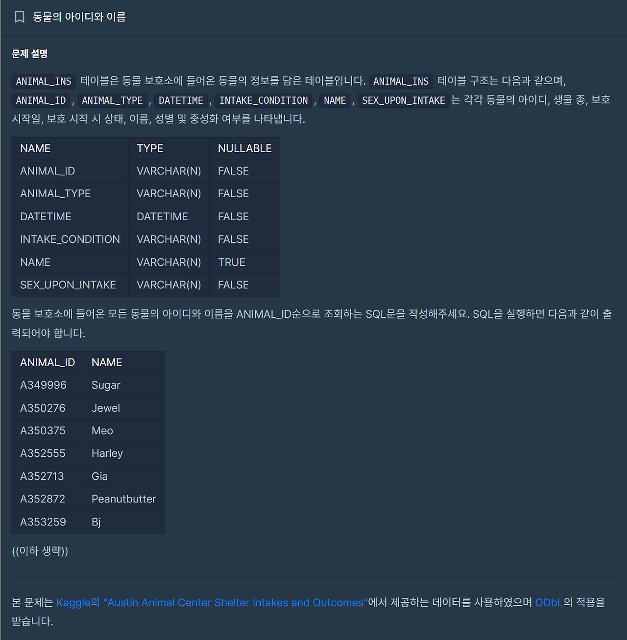 | 프로그래머스 Lv1 어린 동물 찾기 (MySQL) (0) | 2024.02.02 |
