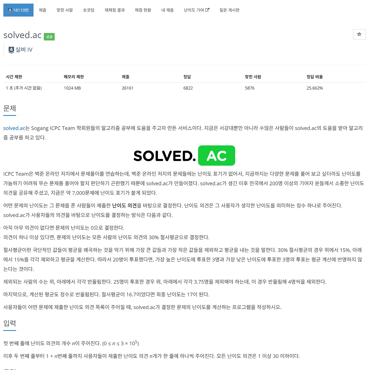 # 어떤 문제의 난이도는 그 문제를 푼 사람들이 제출한 난이도 의견을 바탕으로 결정