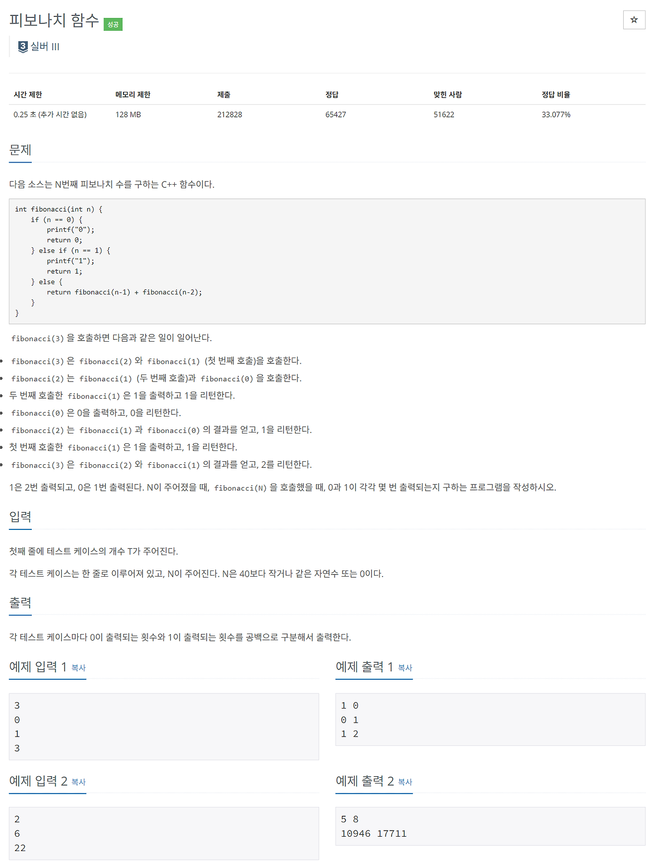 테스트 케이스에선 문제가 없었다. 실제 문제에서도 답은 다 맞았을 것이다. 하지만 문제를 푸는데 있어서 시간 초과가 발생했다. 아무래도 fibonacci() 함수를 바닥까지 찍어두고 시작하니 그런가 보다.